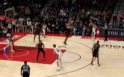 第三节比赛,卡马拉命中本场个人第4记三分,开拓者第三节追平比分。